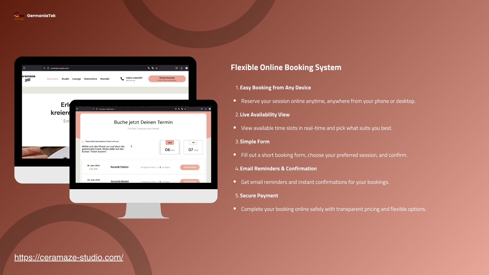 Nutzer*innen aller Altersgruppen können eigene Sessions buchen, um Keramikstücke zu bemalen und zu dekorieren – für ein kreatives, entspannendes Erlebnis voller Kunst und Individualität.