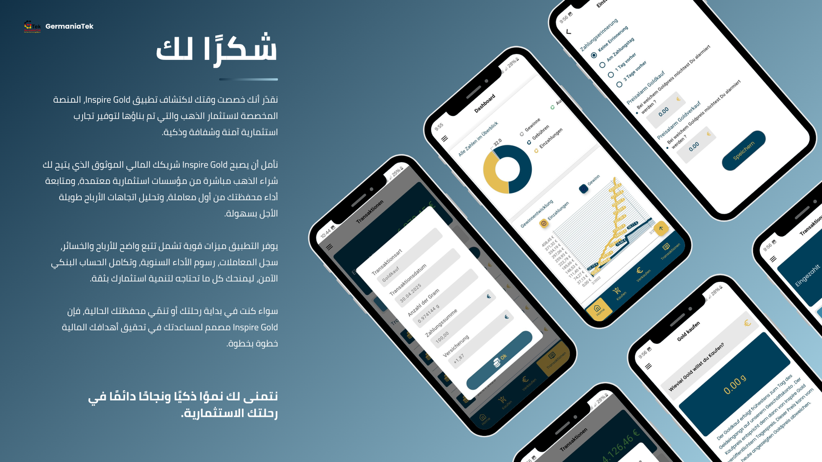 Inspire Gold هي منصة رقمية متخصصة في الاستثمار الذكي في الذهب، تتيح للمستخدمين شراء وإدارة وتتبع استثماراتهم في الذهب بكل أمان وشفافية