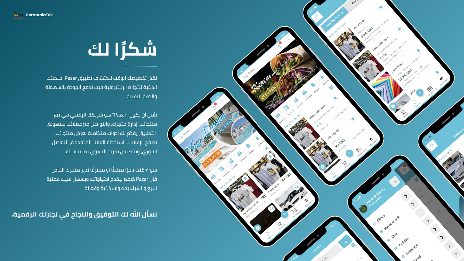 يتيح Pazar تجربة تسوق رقمية متكاملة من خلال تطبيق موبايل حديث، لوحة تحكم مرنة، وصفحة هبوط (Landing Page) مصممة لتحفيز الزوار وتحويلهم إلى عملاء فعليين.