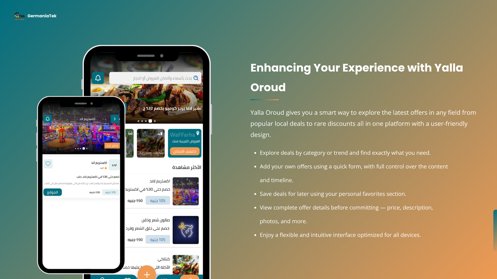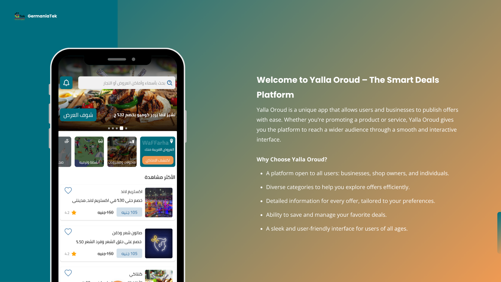 Yalla3oroud is a smart app that displays the latest offers and discounts on products from various stores all in one place.