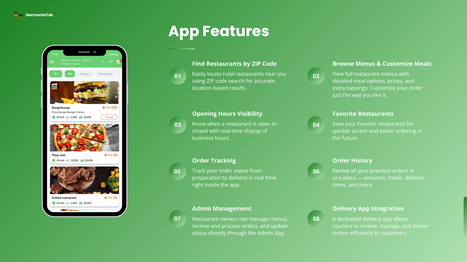 - Ein besonderes, halal-konformes Online-Food-Erlebnis bieten.