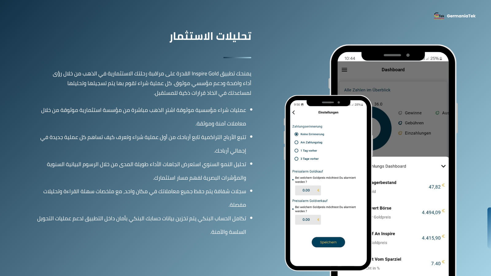 Inspire Gold هي منصة رقمية متخصصة في الاستثمار الذكي في الذهب، تتيح للمستخدمين شراء وإدارة وتتبع استثماراتهم في الذهب بكل أمان وشفافية