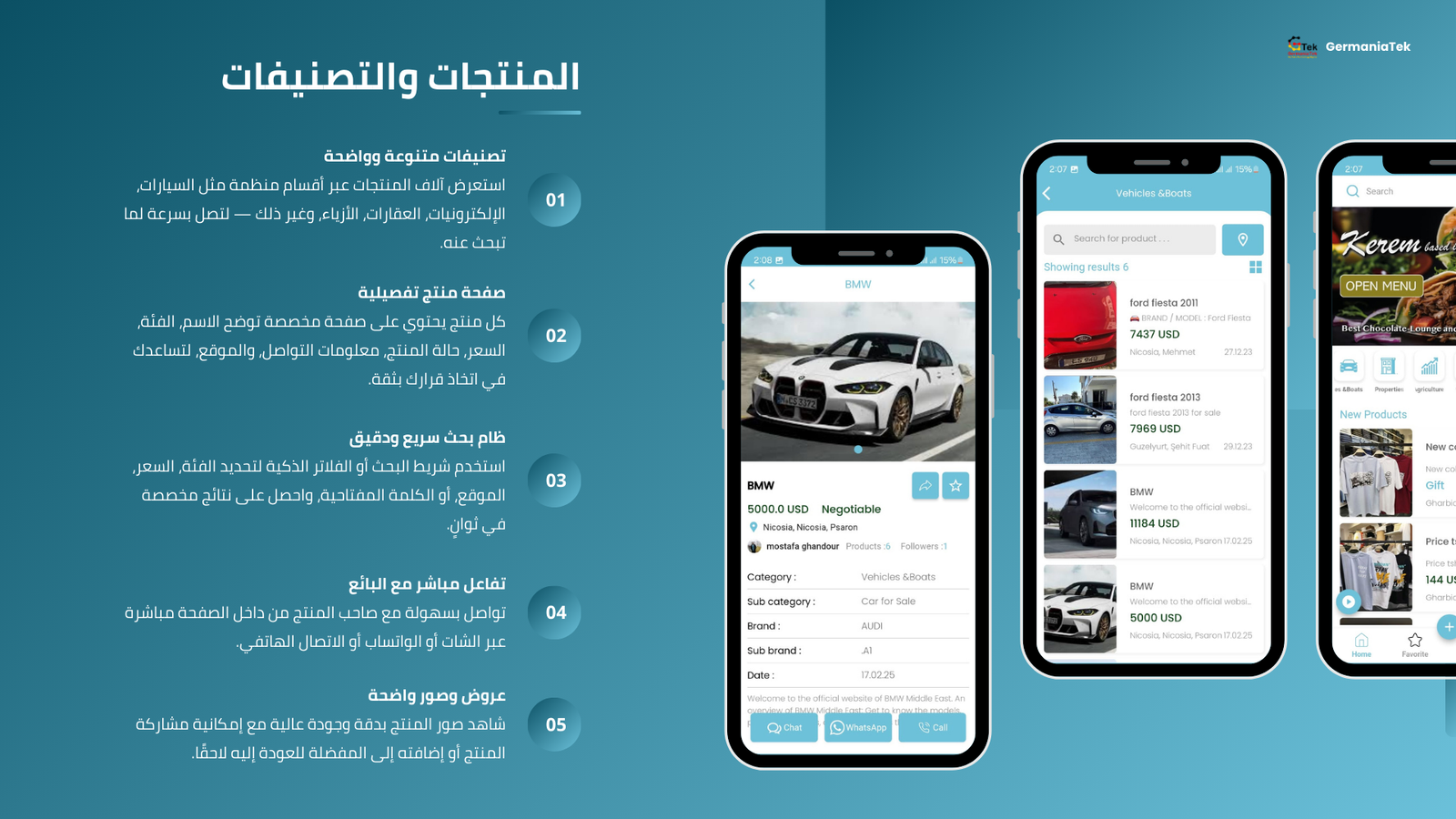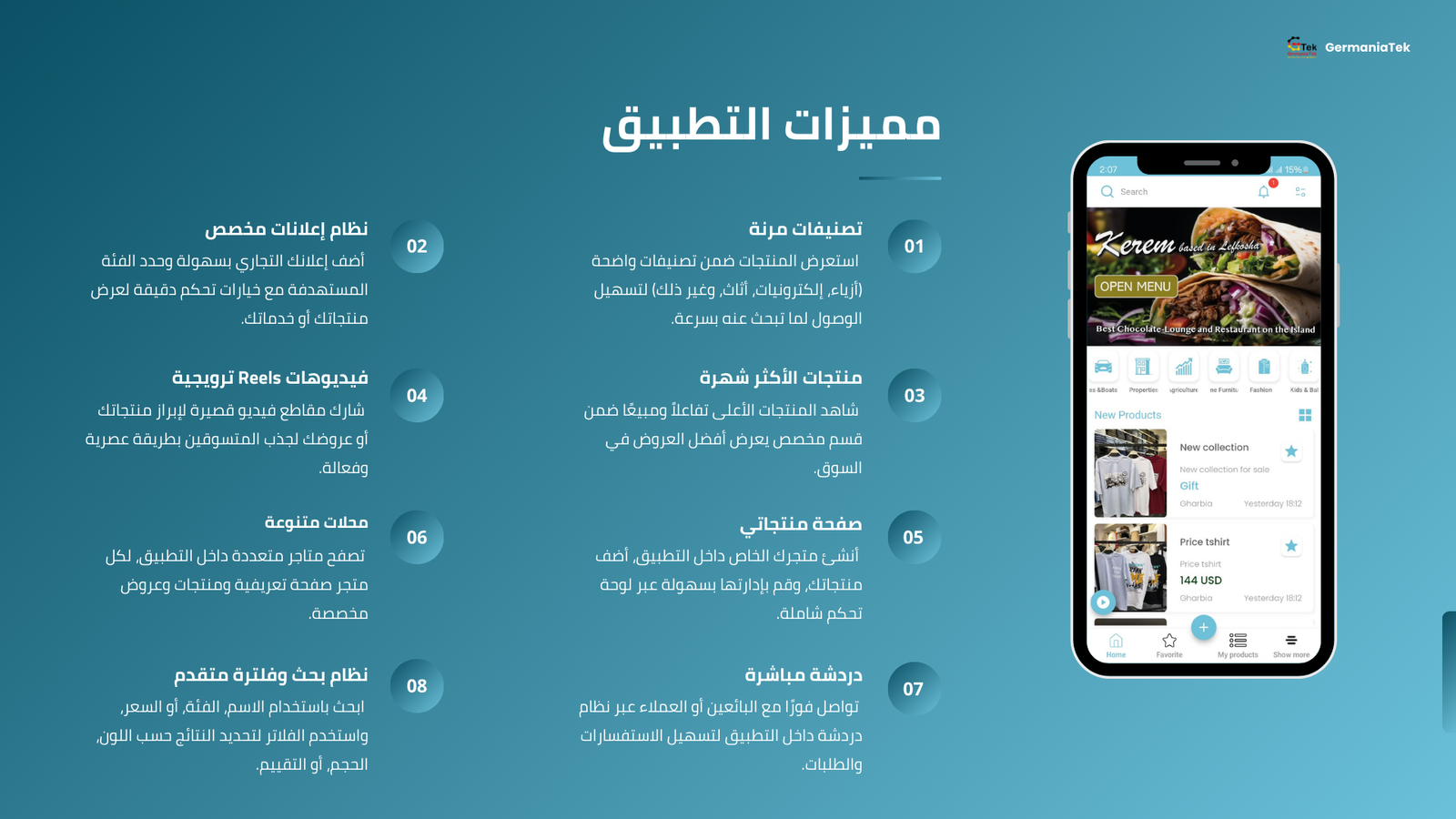 • تطبيق موبايل سهل الاستخدام لعرض المنتجات وإجراء الطلبات بسرعة.