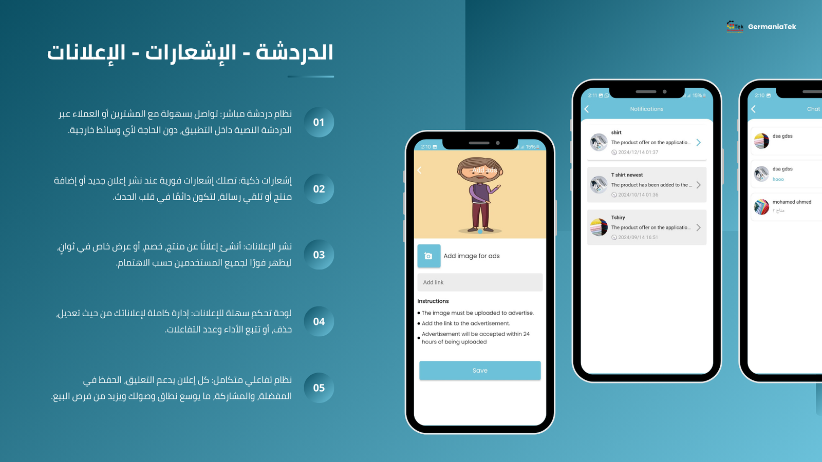 • نظام تنبيهات ذكي لتحديثات الطلبات والتفاعل مع العملاء.