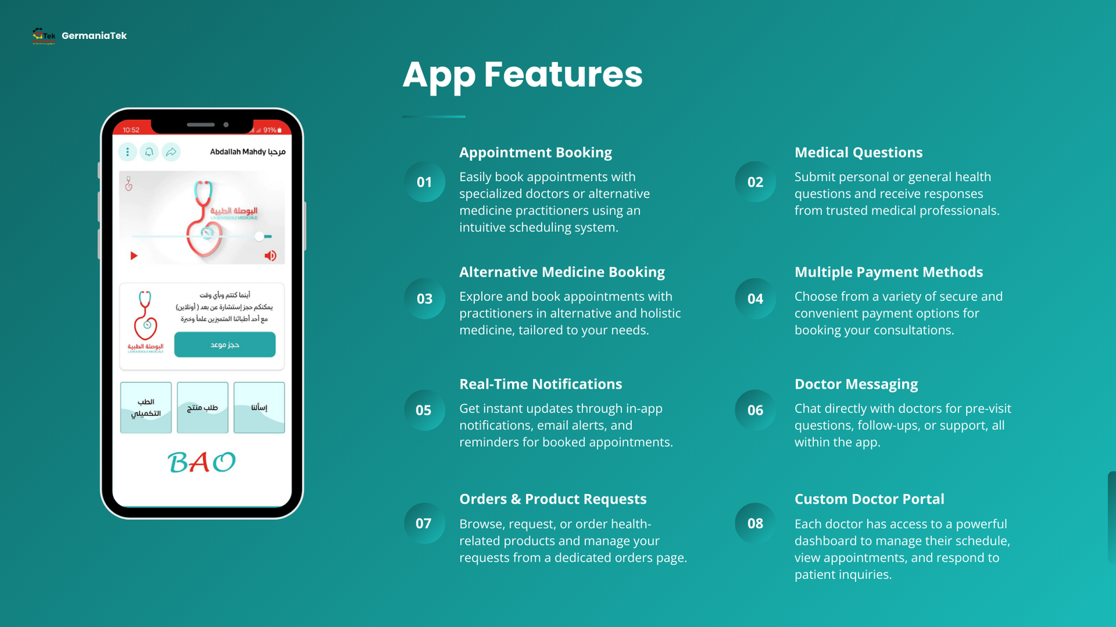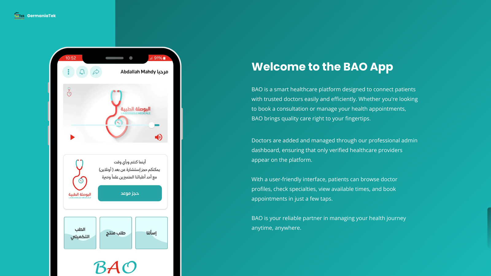 BAO ist ein umfassendes digitales System zur Verwaltung der Beziehung zwischen Ärzt*innen und Patient*innen. Es vereinfacht Terminbuchung, Untersuchungen und Online-Beratungen.