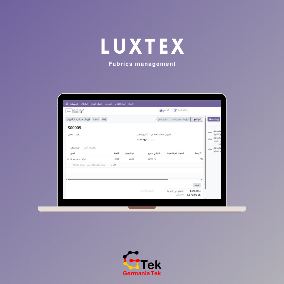 LuxTex is an integrated system built on Odoo for fabric trading and management, specifically designed to meet the needs of fabric traders, factory owners, and distributors.
