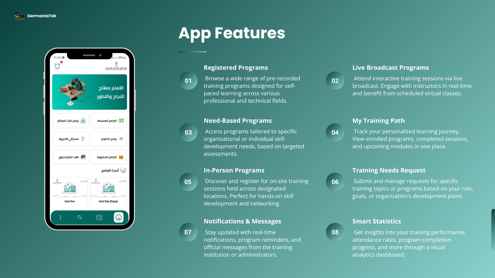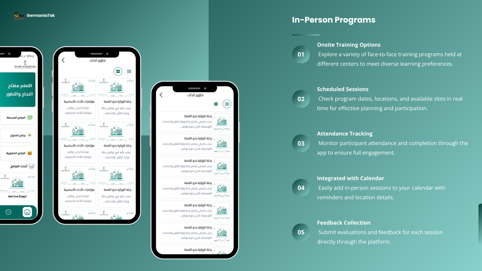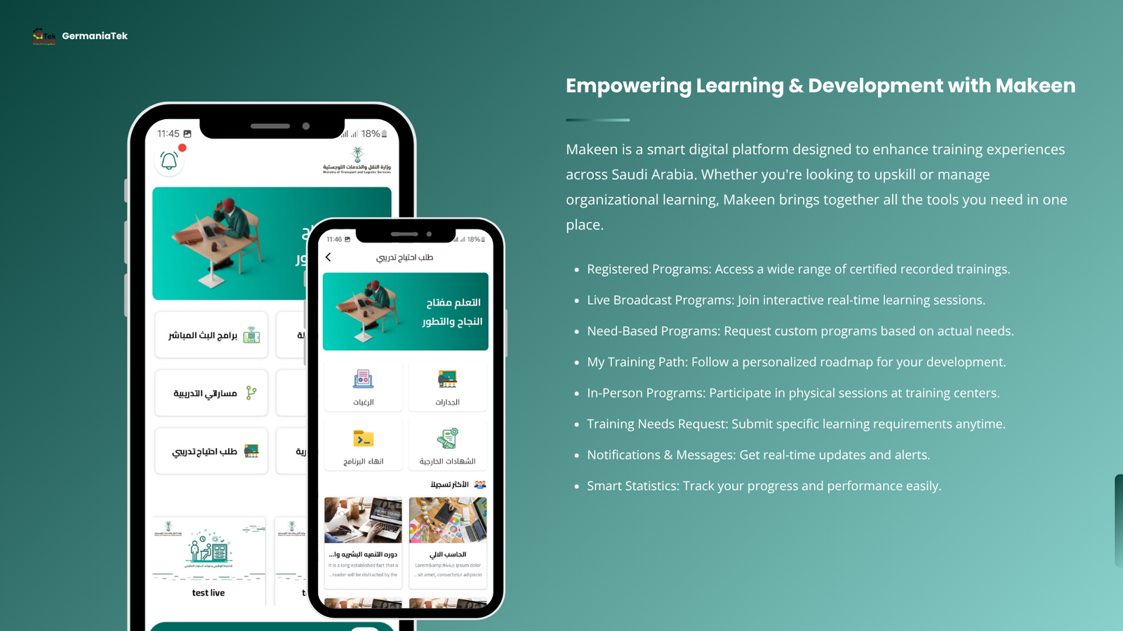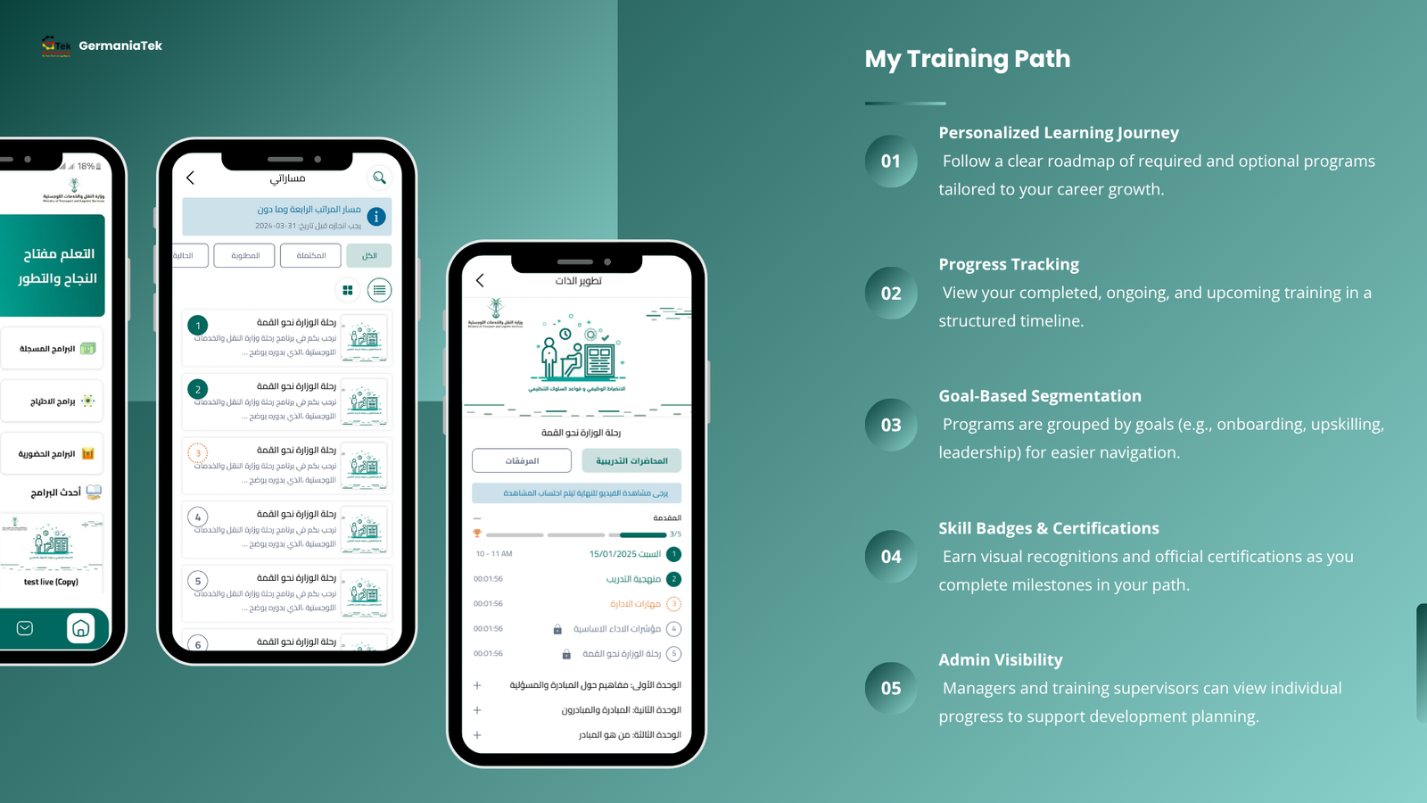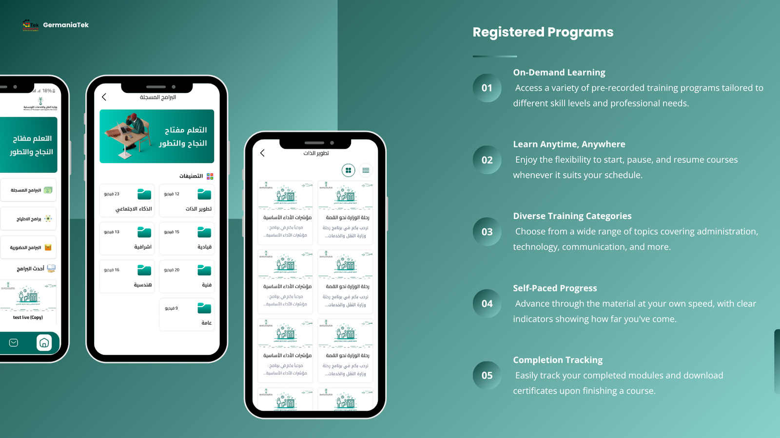 - Enhance trainees' efficiency and develop their skills in line with the Saudi job market.