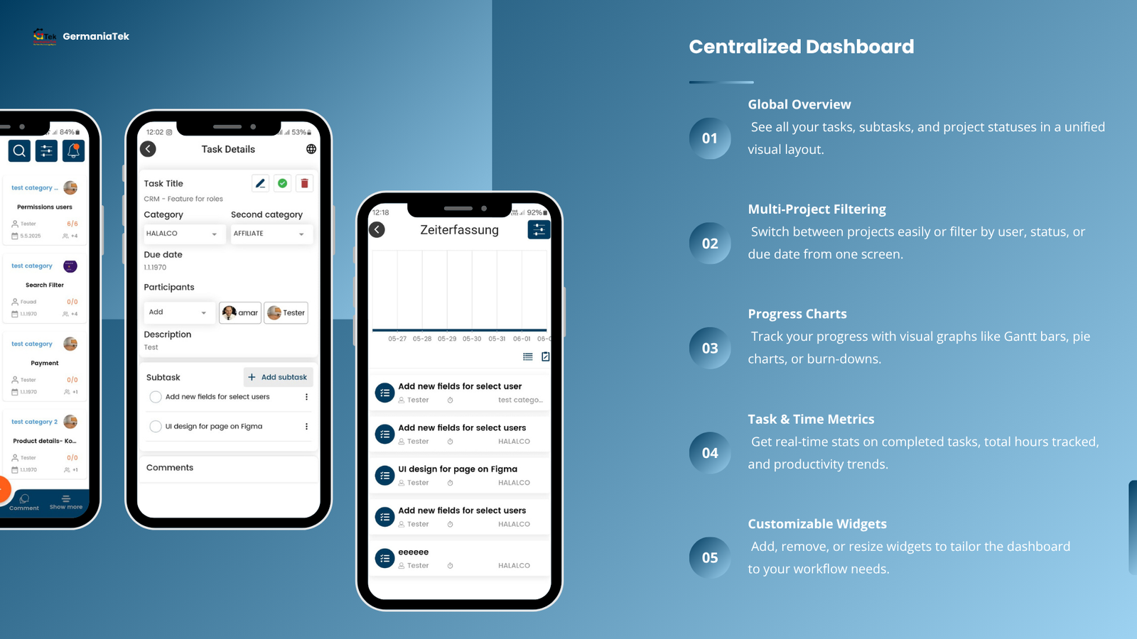 - Produktivität von Einzelpersonen und Teams durch smartes Aufgabenmanagement verbessern.